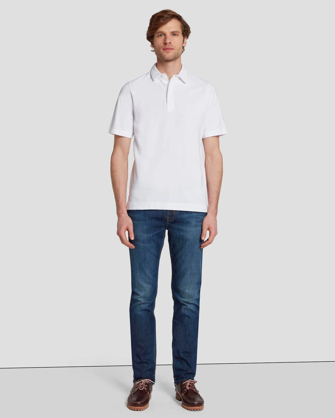Our beloved straight-leg fit, reimagined in Airweft – Japanese denim made with hollow fibers for a lightweight feel with uncompromising durability. Done in a dark wash with the slightest distress details for laid back styling.