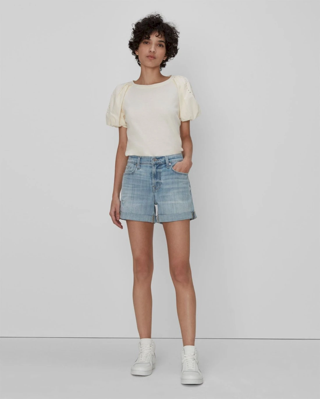 A warm-weather essential for every wardrobe, these denim shorts get added polish with a neatly cuffed hem. Crafted in a faded blue wash from our soft, broken twill denim that offers plenty of stretch for comfort. Style these with a classic button-up to create an elevated casual look.