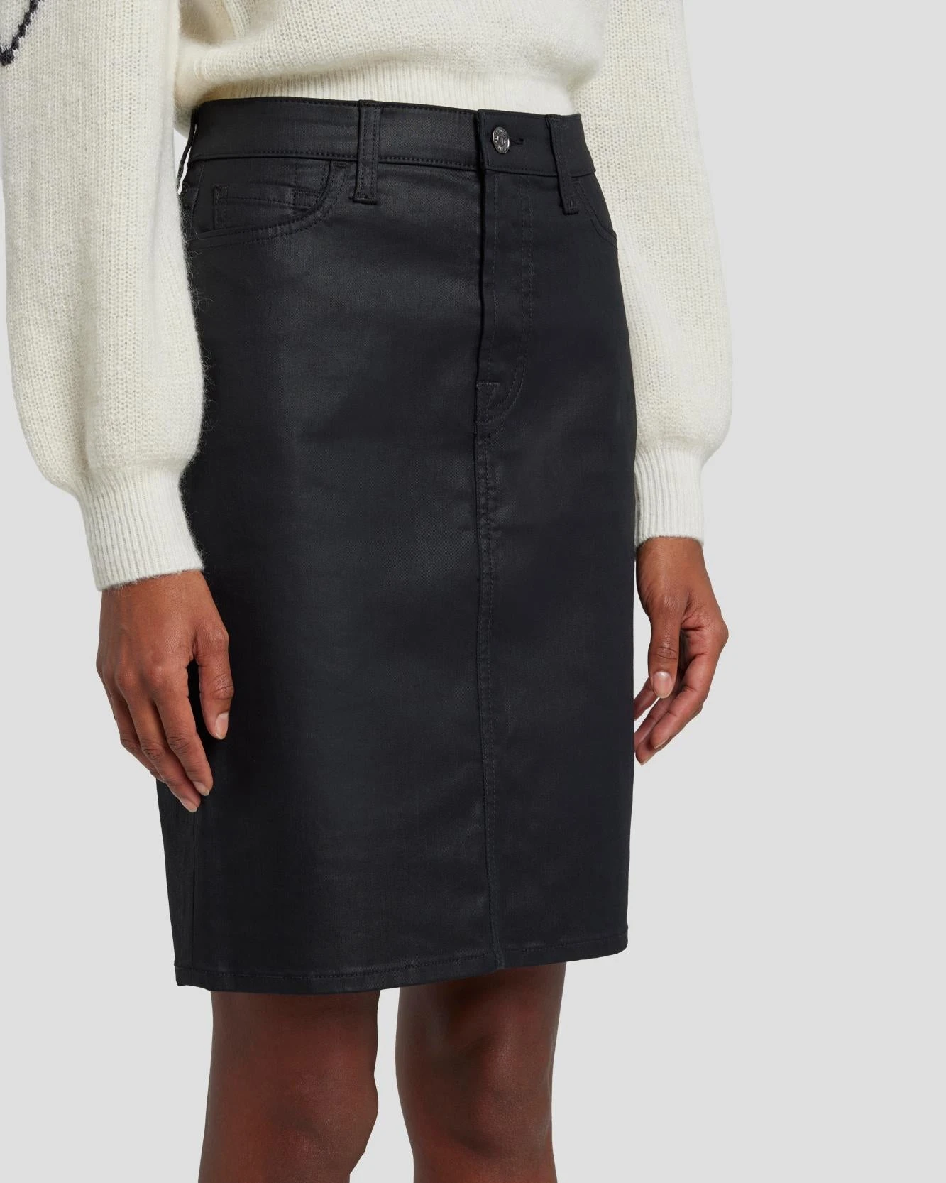 From desk to dinner. This classic pencil skirt is given leather-like edge in a slick, coated denim. Featuring a high waist and back slit, this skirt is crafted from our medium stretch denim for all-day comfort.