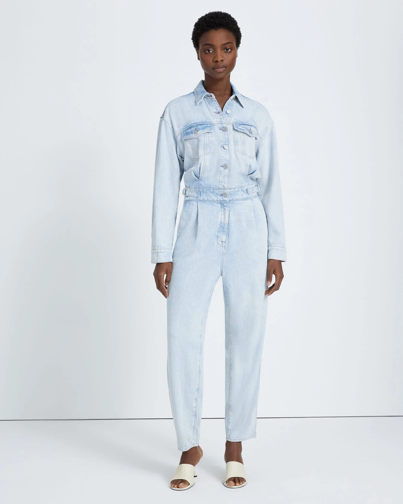 Our Denim Lustre collection is crafted from biodegradable and compostable fabrics for breathable long-lasting comfort and a super-soft hand feel. This jumpsuit is the definition of modern one-and-done dressing. The faded, light wash gives it go-anywhere potential. The straight leg and relaxed fit are offset with adjustable tabs to define the waist. Signature rivets offer a utility-inspired finish. Wear this one on repeat.