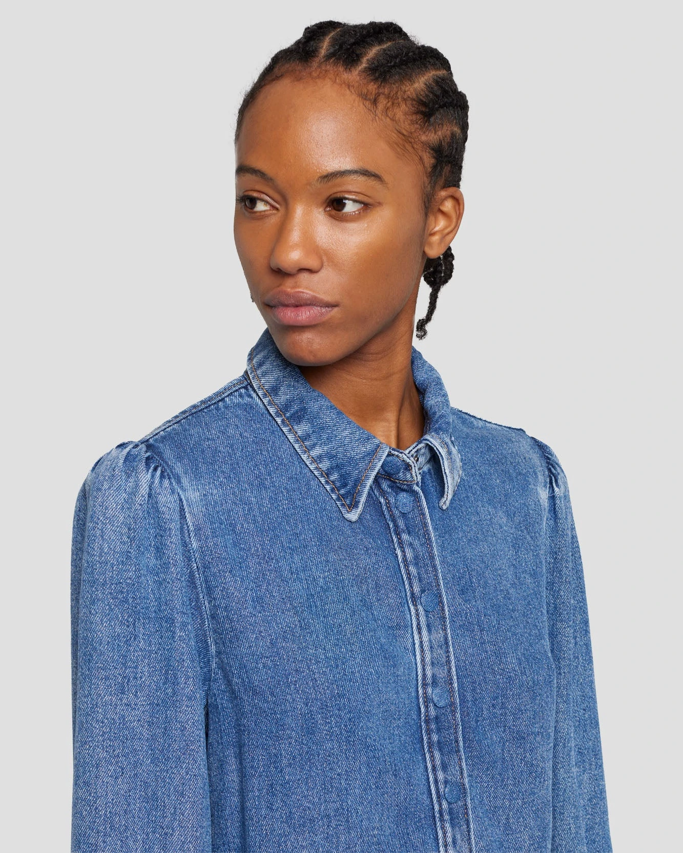The ideal denim overshirt. Crafted from 100% lyocell, our Denim Lustre line has a super-soft hand feel and is made with the environment in mind. Featuring pronounced puff sleeves, covered buttons and a back yoke, this button down shirt can be paired with jeans for an easy denim on denim look.