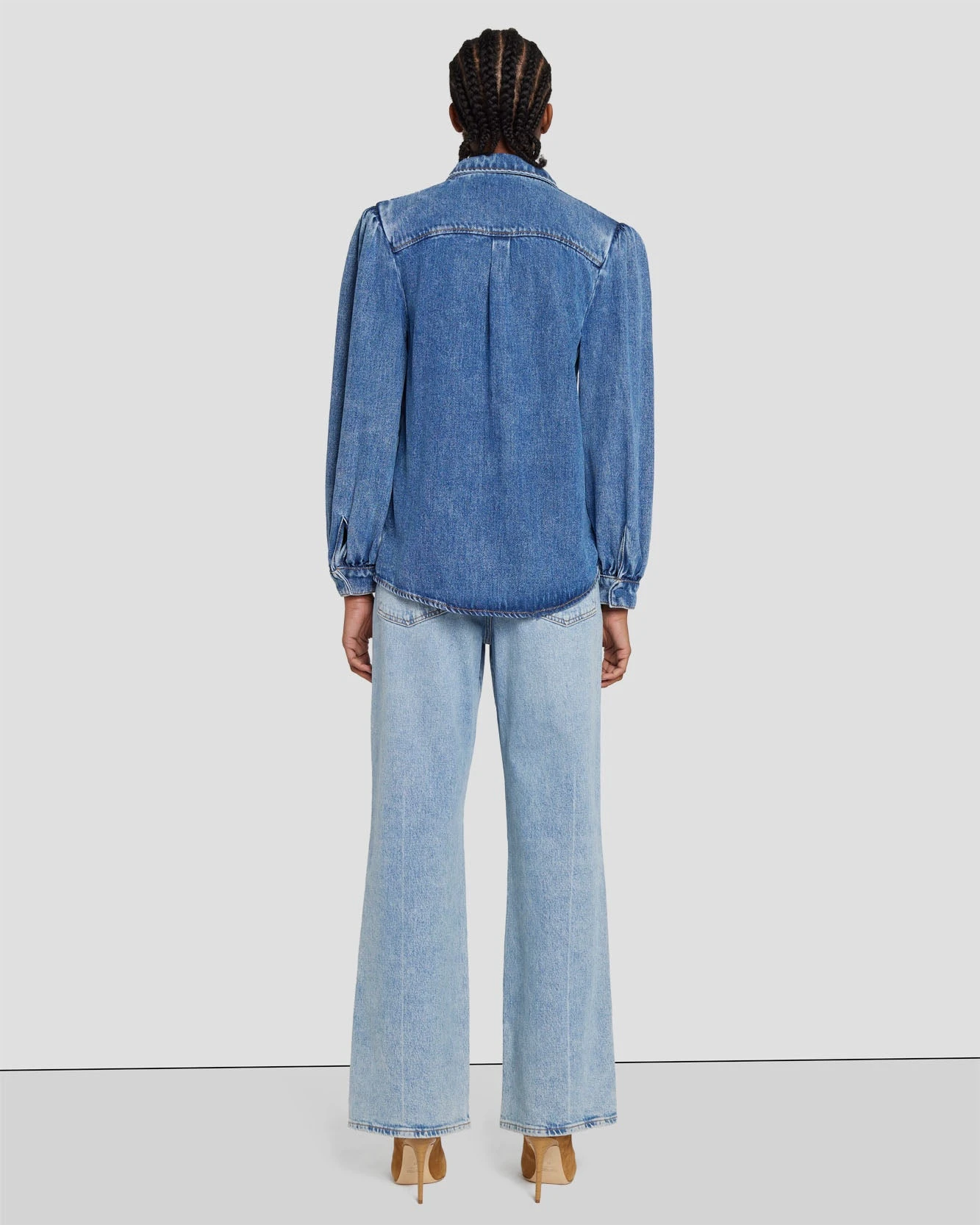 Be the first to review “7 For All Mankind Denim Lustre Puff Sleeve Shirt In Daylily” Cancel reply