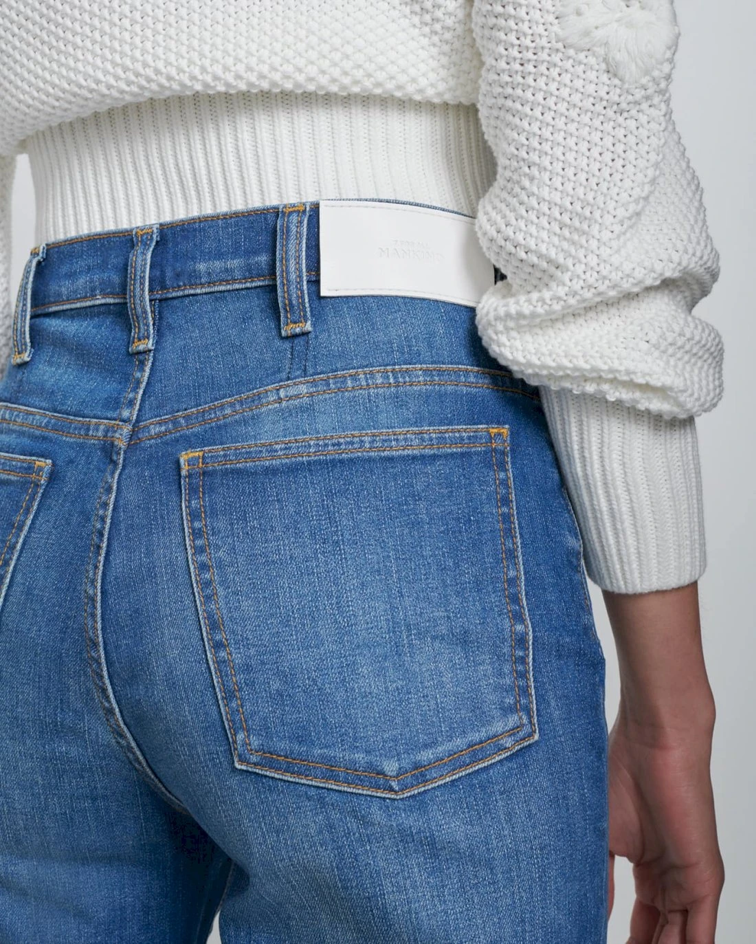 Modern comfort redefined. This upgrade to our well-loved bootcut style features a higher rise and built-in ease. Done from comfort stretch denim for all-day wear in a medium wash, this high-rise style suits desk-to-dinner looks that suit your lifestyle. Top with a button-up for day and a silky style for night.