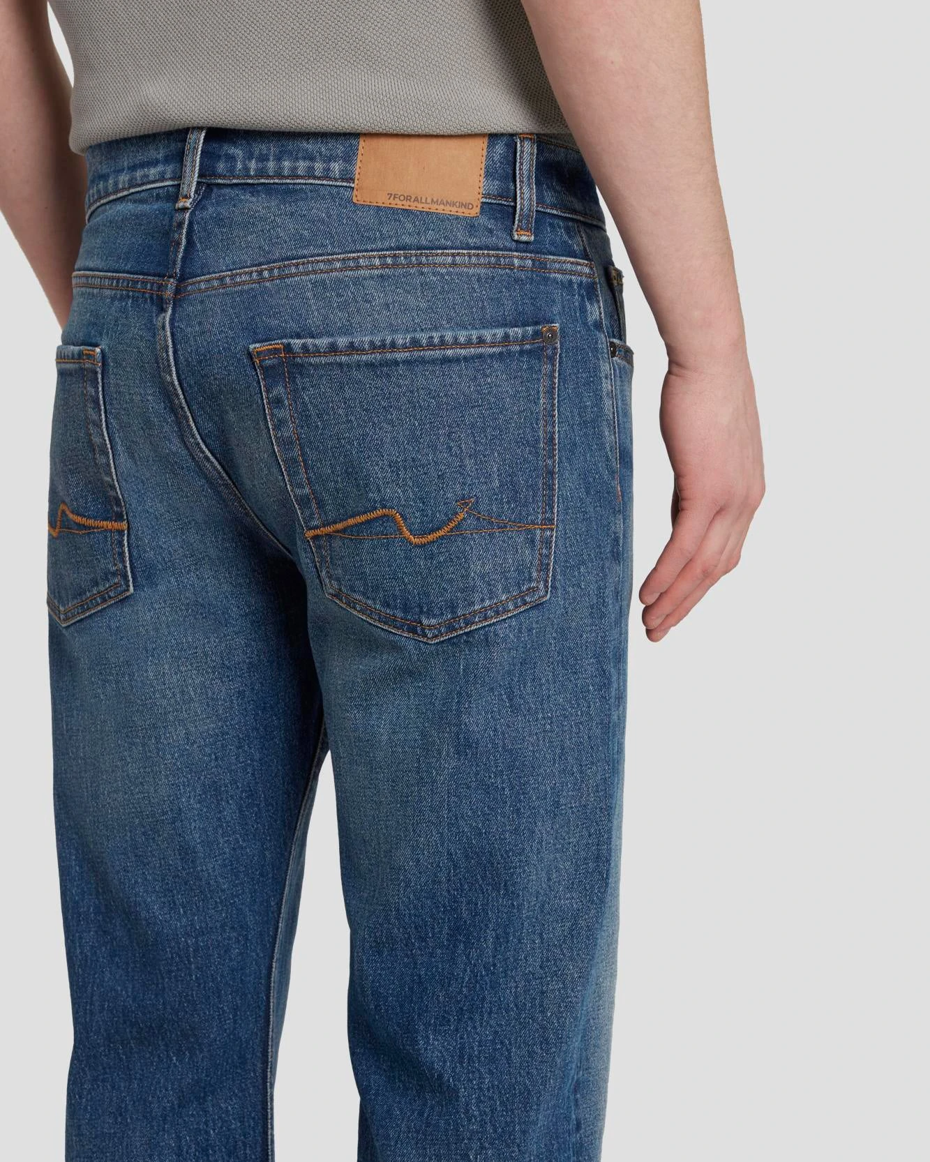 Our new Everyday 7 line references traditional denim construction with its structured design and sturdy handfeel. This medium wash pair offers a slightly looser fit for increased comfort without looking baggy. Gently faded for that perfectly worn-in look, and featuring our signature 7 squiggle embroidery on the back pockets.