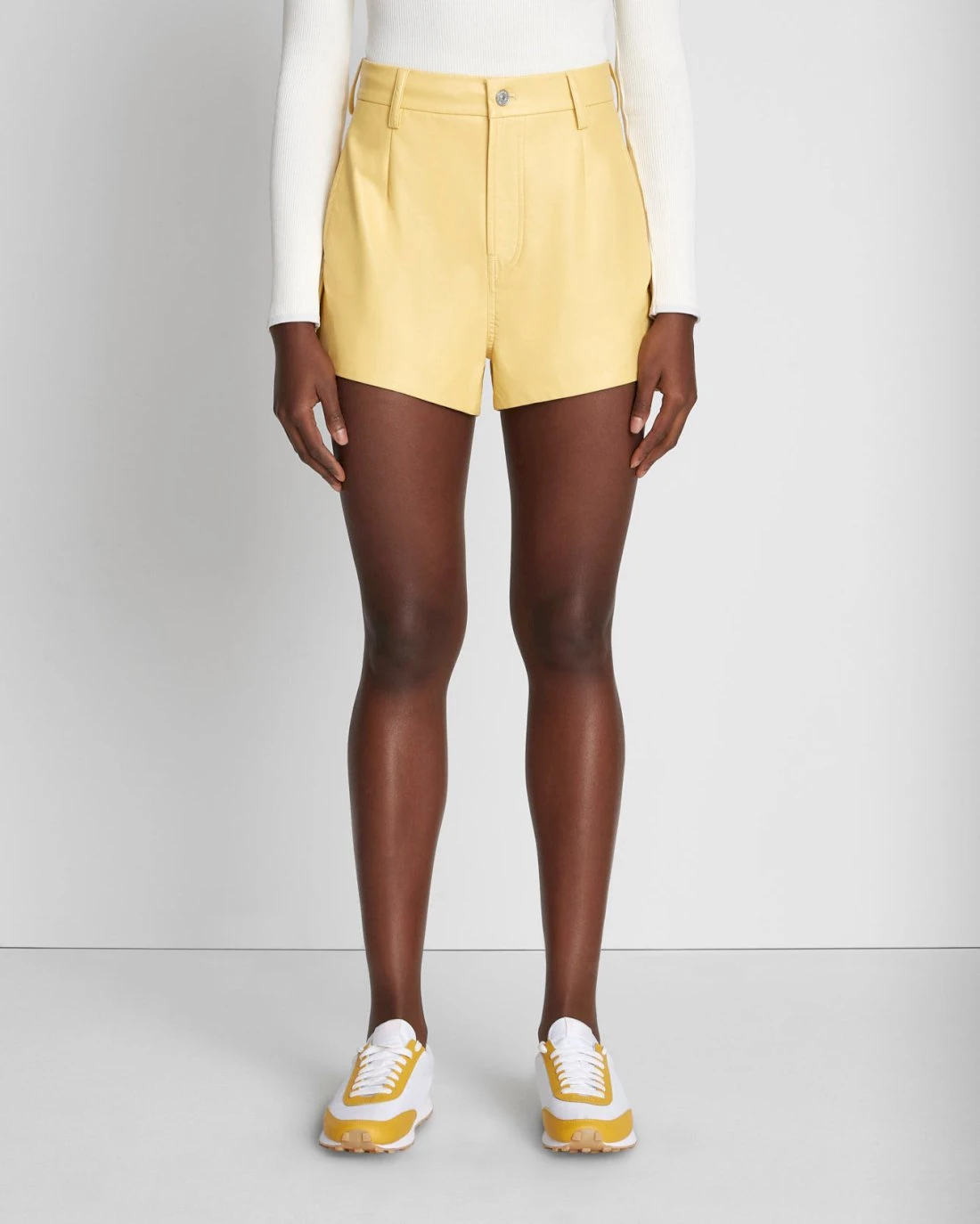 These bright and bold, faux leather shorts feature a high-waisted silhouette, and flattering pleats at the front. The step hem detail adds a bit of length to the back. They look as chic with sneakers and an oversized hoodie as they do with a blazer and heels.