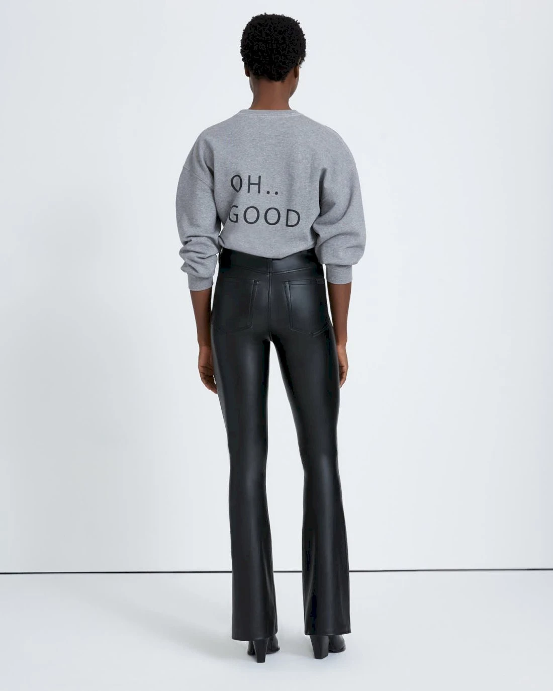 Cut from sleek, faux leather this bootcut is slim through the thigh and flared at the hem with an ultra-high rise. The perfect ‘cool girl’ alternative to your regular denim. Polished enough to wear to the office or after hours…