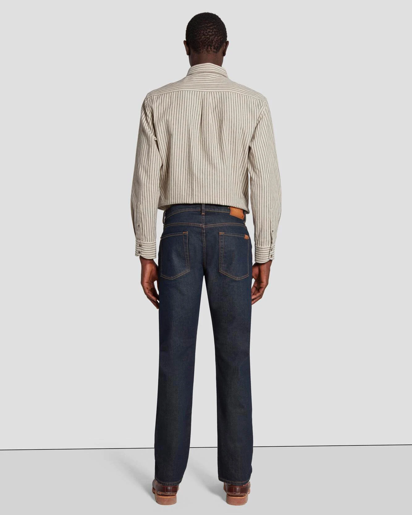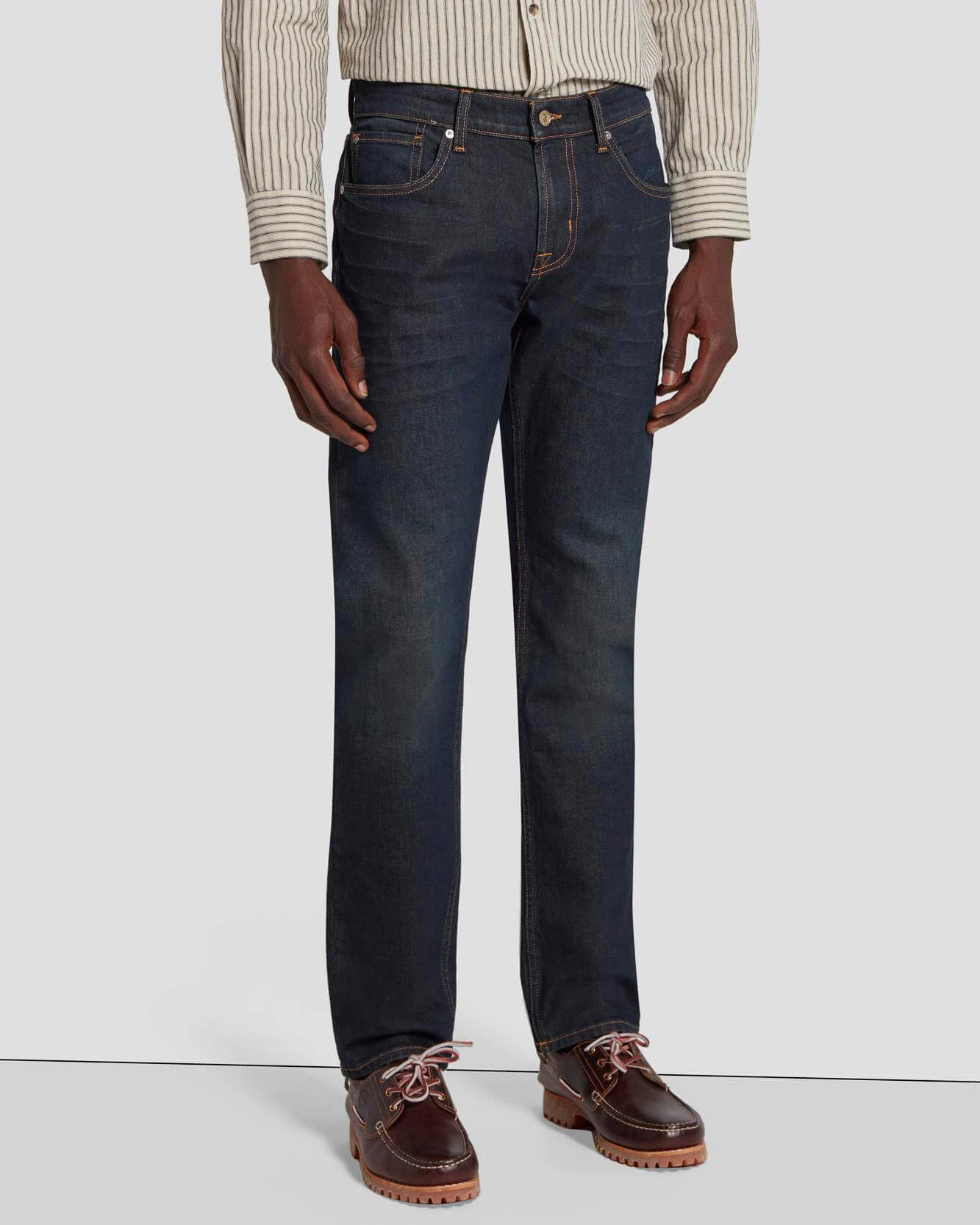 Our straight fit is balanced from hip to hem and timeless as ever. Cut from our heritage premium Japanese denim with a washed out effect. This classic dark rinse is perfect for everyday wear.