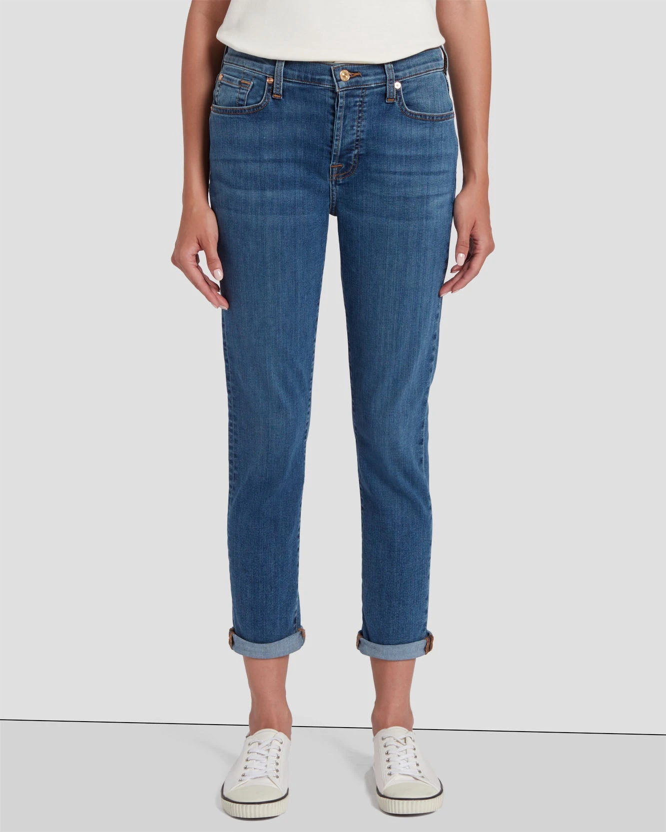 A more feminine take on the boyfriend jean. Featuring a narrower, slimmed-down fit, this pair of denim is cut from our signature, comfort stretch denim and comes in a classic, medium-blue wash, Meisa. Pairs well with heels and a blazer for a casually elegant finish.