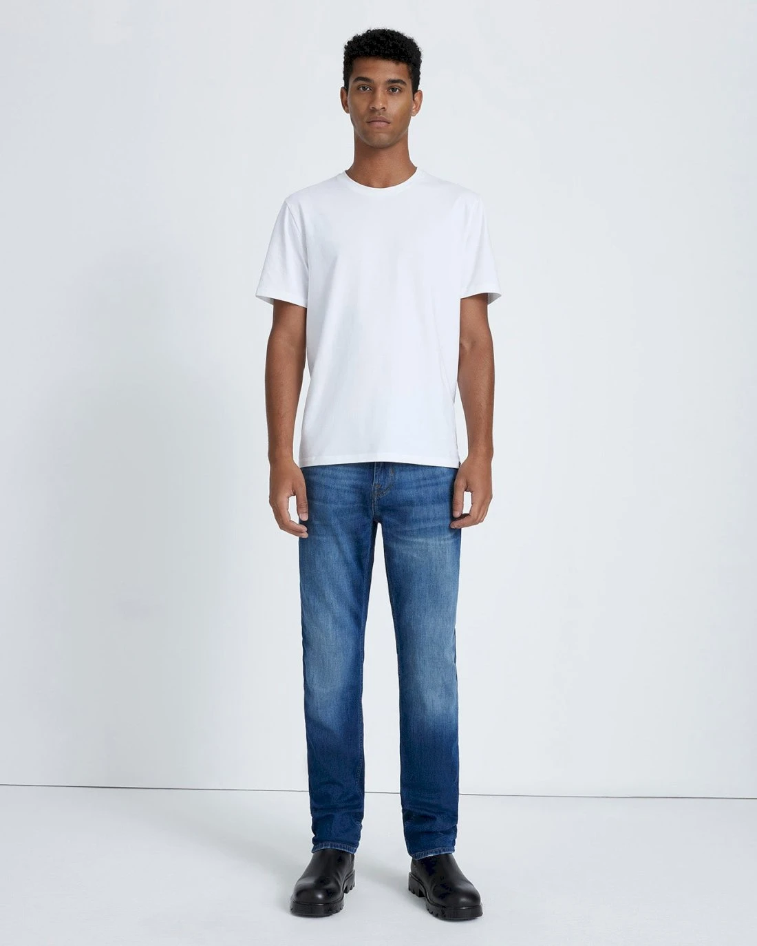 Our ever-popular slim fit silhouette crafted with Left Hand denim delivers your softest, most comfortable feel for all-day wear. Offered in a mid-blue wash, marked by whiskering and fading. This men’s jean is the perfect way to keep things casual with a tee, toss on a button down for polish.