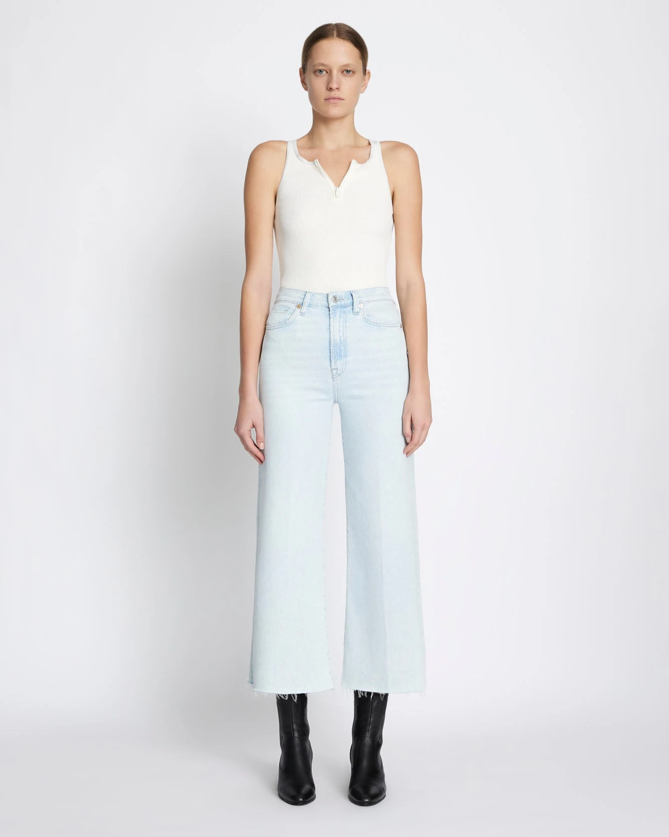 We borrowed our popular Dojo trouser silhouette and gave it an ultra-high rise and a cropped length. Crafted from our signature Luxe Vintage denim, which combines a vintage look and the perfect amount of stretch. These pair of women’s jeans offer a fresh, light wash and a raw hem that will keep your look effortless no matter how you style it.
