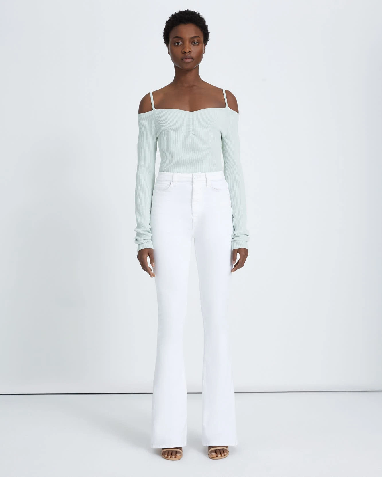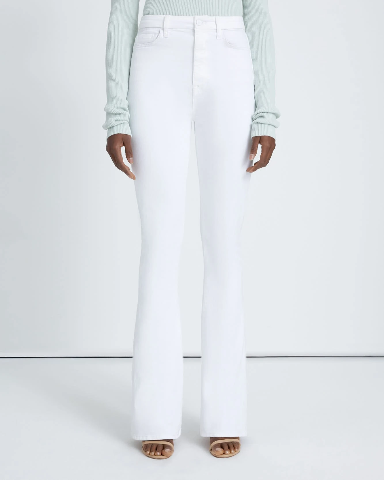 A modern take on the bootcut, this skinny version is slim through the thigh and flared at the hem. Made from our No Filter denim offering extra stretch, shape, and softness inspiring your most confident look yet, no filter required. The ultra high-rise waist and fresh, white wash will elevate any look.