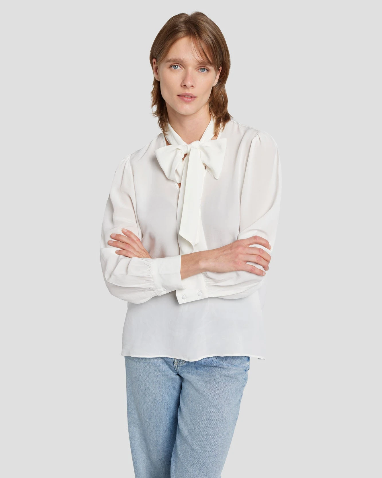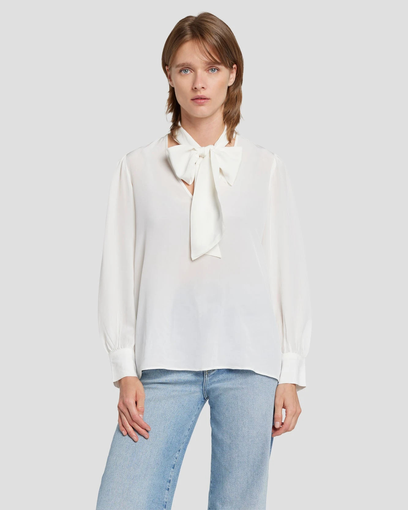 Be the first to review “7 For All Mankind Silk Tie Neck Blouse In Cream” Cancel reply