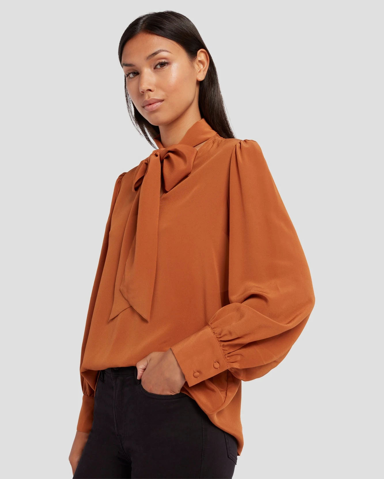 Be the first to review “7 For All Mankind Silk Tie Neck Blouse In Ginger” Cancel reply