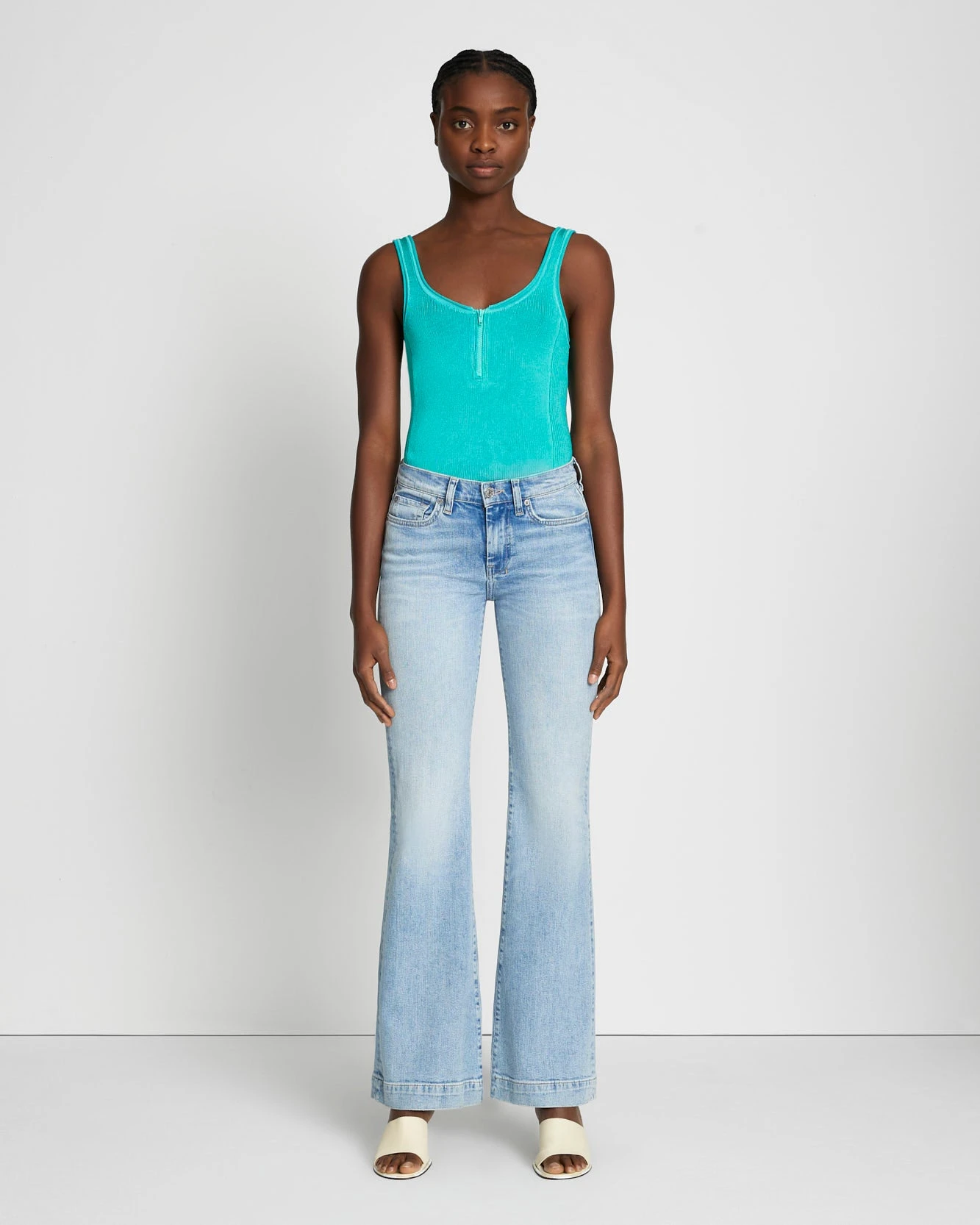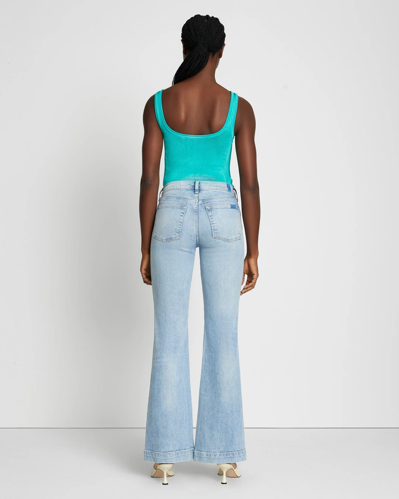 Our popular trouser silhouette goes Tailorless. So, you get the same iconic, mid-rise, Dojo fit with a shorter inseam. Crafted in our premium signature denim with comfort stretch for all-day wear. This pair of women’s denim comes in a light blue wash with a clean back pocket so it’s easy to pair them with anything in your closet.