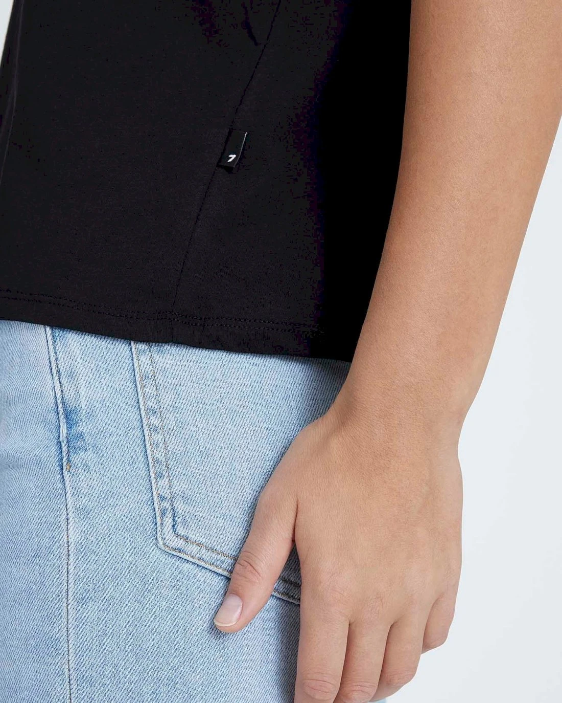 This relaxed fit tee with a flattering v neckline is the perfect complement to all the denim in your wardrobe. Slip on this women’s t-shirt that is classic and the perfect addition to your closet. Build your essentials and layering collection and you’ll always have something to wear.