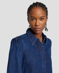 7 For All Mankind Denim Lustre Belted Shirtdress In Dark Indigo