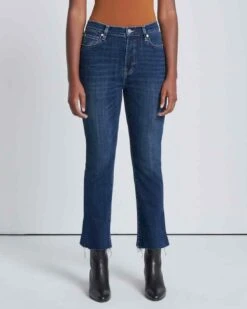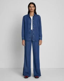 7 For All Mankind Denim Lustre Belted Shirtdress In Dark Indigo