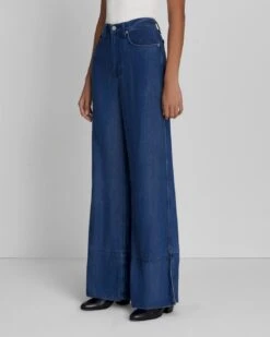 7 For All Mankind Denim Lustre Long Sleeve Jumpsuit In Poppy